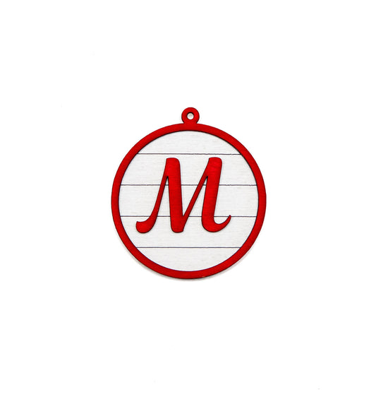 Custom Monogram Painted Wood Ornament-Custom Letter-Red And White Ornament-Holiday Ornament-Custom Ornament-Monogram Ornaments