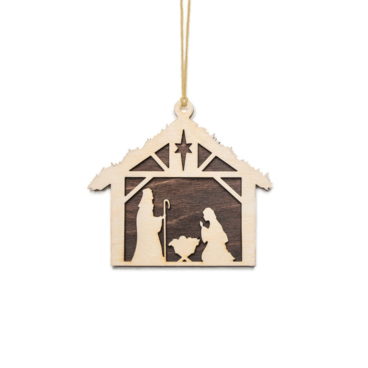 Nativity Scene Layered Wood Ornament-Dark Walnut Backing-Unfinished Top-Christmas Ornament-Laser Cut-Choose A Size-Christmas Tree Ornament