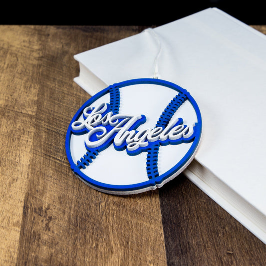 Los Angeles Baseball Painted Wood Ornament-LA Theme Decor-Blue And White-Sports Theme-Los Angeles Gifts-Three Layer Piece-3D Tree Ornament