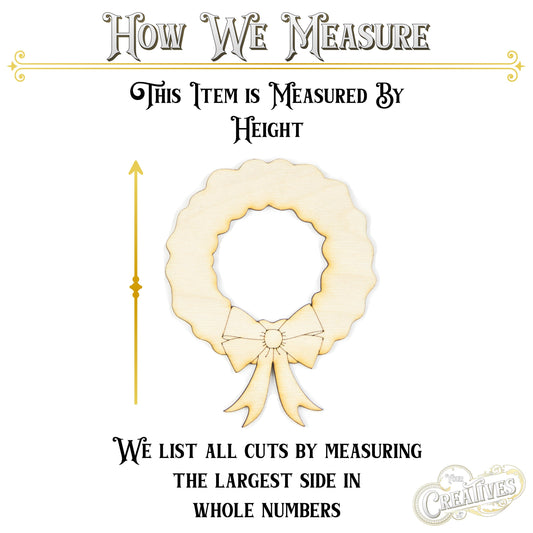 Holiday Wreath-Wood Cutout-Wreath With Bow-Holiday Wood Decor-Various Sizes-DIY Crafts-Christmas Wreath-Holiday Wood Accents-Wooden Wreath