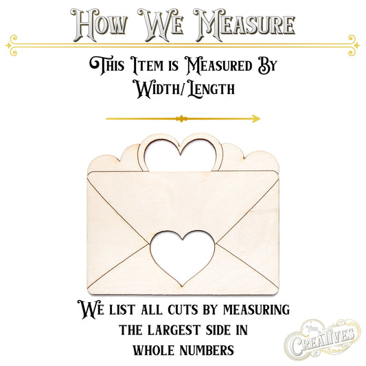 Heart Envelope-Wood Cutout-Single Piece-Valentine Theme Decor-Wooden Envelope-Love Card-Various Sizes-Unfinished Wood-Laser Cut Hearts Decor